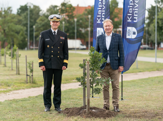 Oak Tree Planted at Klaipeda University to Commemorate the 90th Anniversary of the Lithuanian Naval Force