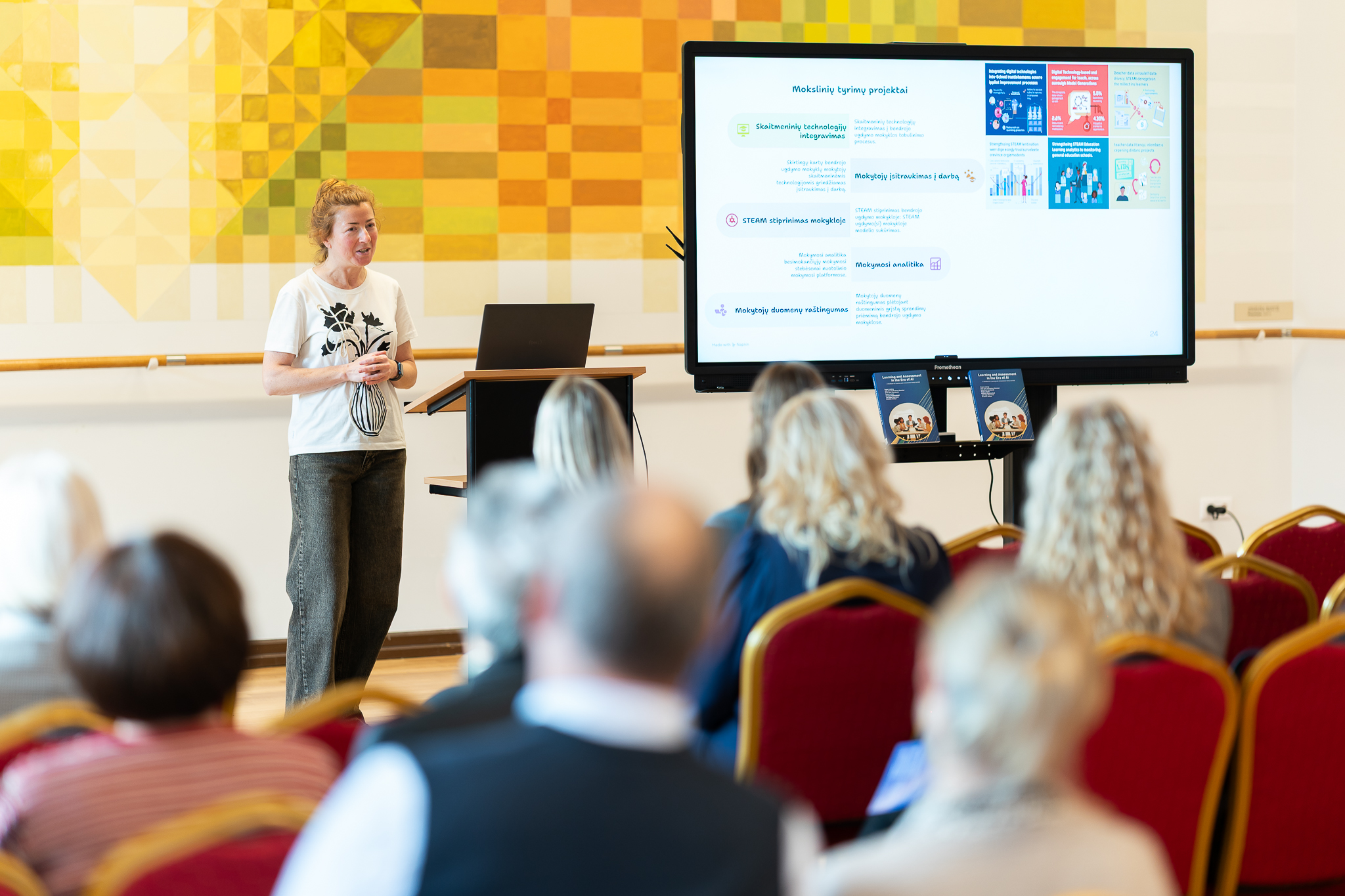 Vėliau vykusi apskritojo stalo diskusija subūrė socialinius partnerius ir Klaipėdos miesto švietimo bendruomenę. Jos metu EDUTECH STEAM laboratorijos mokslininkės doc. dr. Gražina Šmitienė ir prof. dr. Julija Melnikova pristatė naujausius Pedagogikos katedros tyrimus DI ir ugdymo kokybės kontekste. Mokslininkės kvietė Klaipėdos miesto švietimo bendruomenės atstovus diskutuoti apie DI vaidmenį gerinant ugdymo kokybę mokyklose, taikant DI grįstą formuojamąjį vertinimą bei organizuojant projektais grįstą mokymąsi.