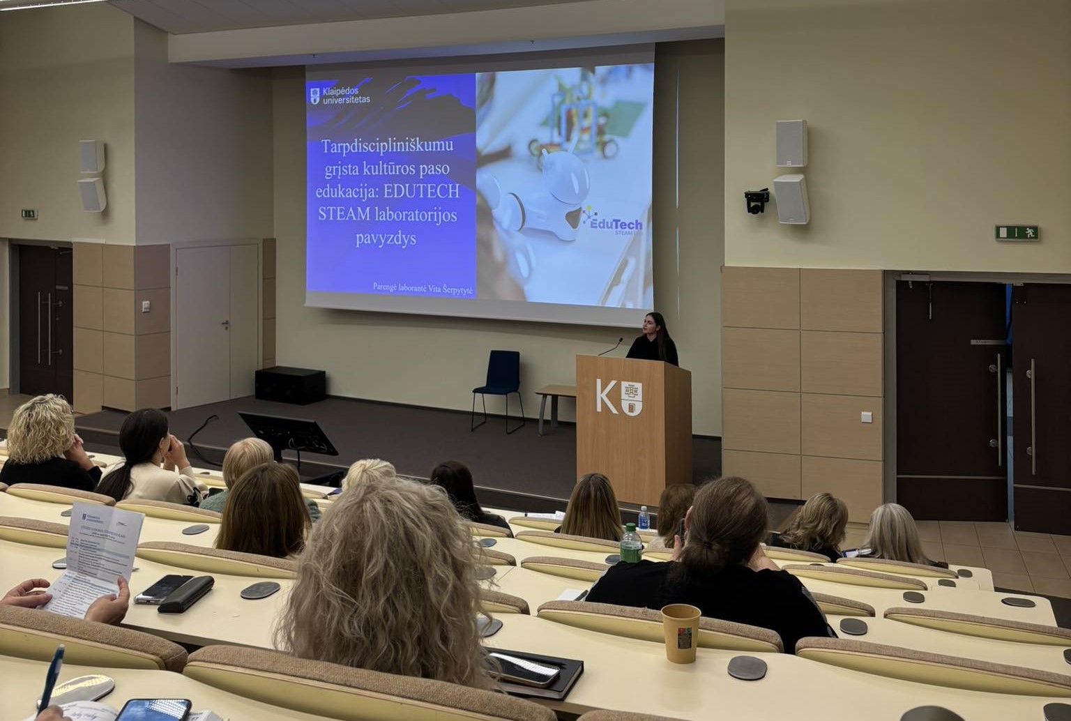 2025 m. lapkričio 27 d. Klaipėdos universiteto metodinėje STEAM atviros prieigos centro mokslinėje-praktinėje konferencijoje ,,Ateities ugdymas: STEAM metodai klasėje“ plenarinio pranešimo metu doc. dr. Gražina Šmitienė ir dr. Rasa Kulevičienė, remdamosi atliktais kokybiniais tyrimais, pristatė pedagogines strategijas ir ugdymo(si) praktikas, padedančias kryptingai plėtoti mokinių kūrybiškumą, kritinį mąstymą ir gebėjimą spręsti realias, kompleksiškas problemas, vykstančias mokyklos transformacijos dirbtinio intelekto (DI) amžiuje. Pristatymo metu akcentuota STEAM ugdymo(si) modelių kaita, kurioje prioritetas skiriamas tyrimais ir projektais grįstam mokymuisi bei inžinerinio mąstymo principų įgyvendinimui. Pranešime taip pat aptarti konkretūs pavyzdžiai, kaip šie principai gali būti integruojami į šiuolaikinį ugdymą mokykloje. Šioje konferencijoje laborantė Vita Šerpytytė pristatė tarpdiscipliniškumu grįstą kultūros paso edukaciją - EDUTECH STEAM laboratorijos pavyzdžius.